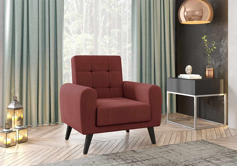 Poltrona para recepção. Pés em madeira (20 cm). Assento e encosto com percintas elásticas e espuma de alta densidade. Assento com espuma densidade 26, encosto e braços densidade 20. Revestimento em tecido ou couro ecológico com várias opções de cores.