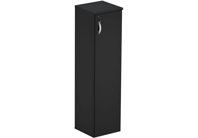 Armário alto fechado 1 porta com 3 prateleiras. Confeccionado em MDP com tampo 25mm de espessura. Porta com chave, com dobradiças metálicas e puxador prata. Medidas: 410Lx420Px1595A.